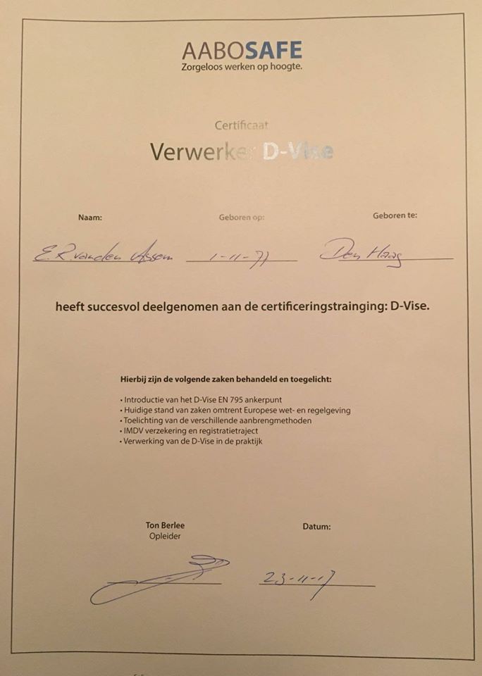 Nieuwtje! Brevis daktechniek is nu officieel gecertificeerd om D-vise klem-ankerpunten voor valbeveiliging op platte daken aan te brengen.